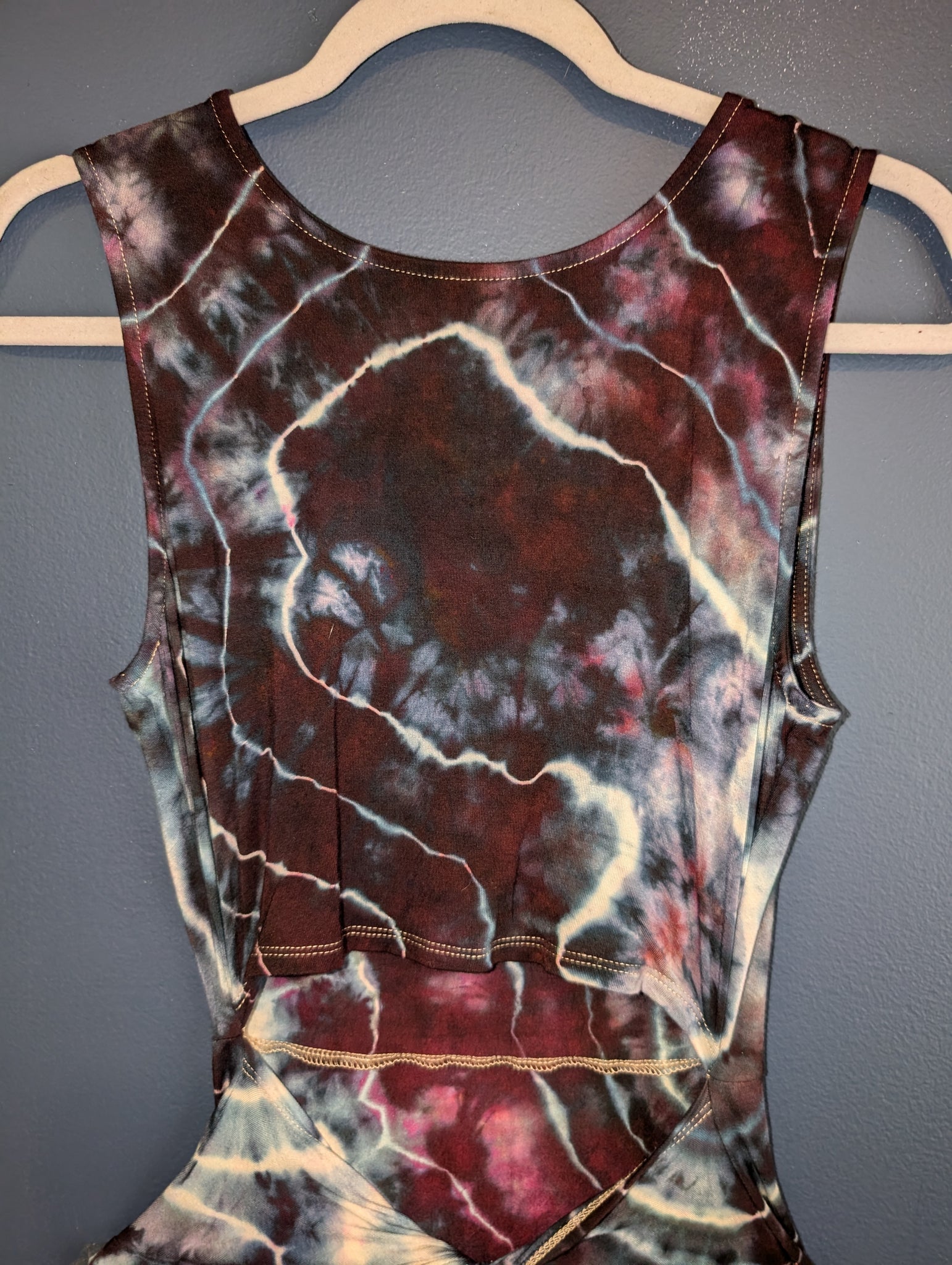 Pit to pit 15 inches. Waist 24 inches. 96% rayon 4% spandex.